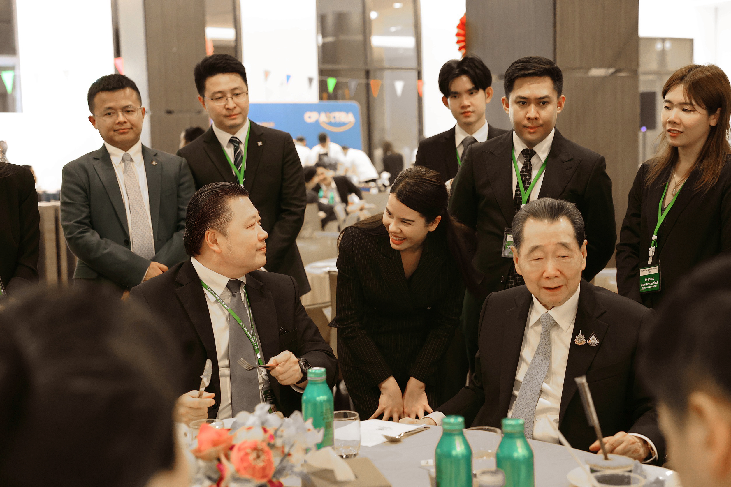 ▲正大集團資深董事長謝國民、董事長謝吉人與CPFresh正大泰國水果中泰團隊晚宴交流。
