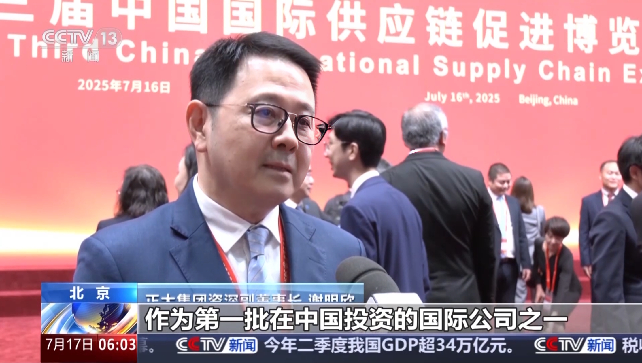 ▲正大集團(tuán)資深副董事長(zhǎng)謝明欣在開(kāi)幕式現(xiàn)場(chǎng)接受央視記者采訪。