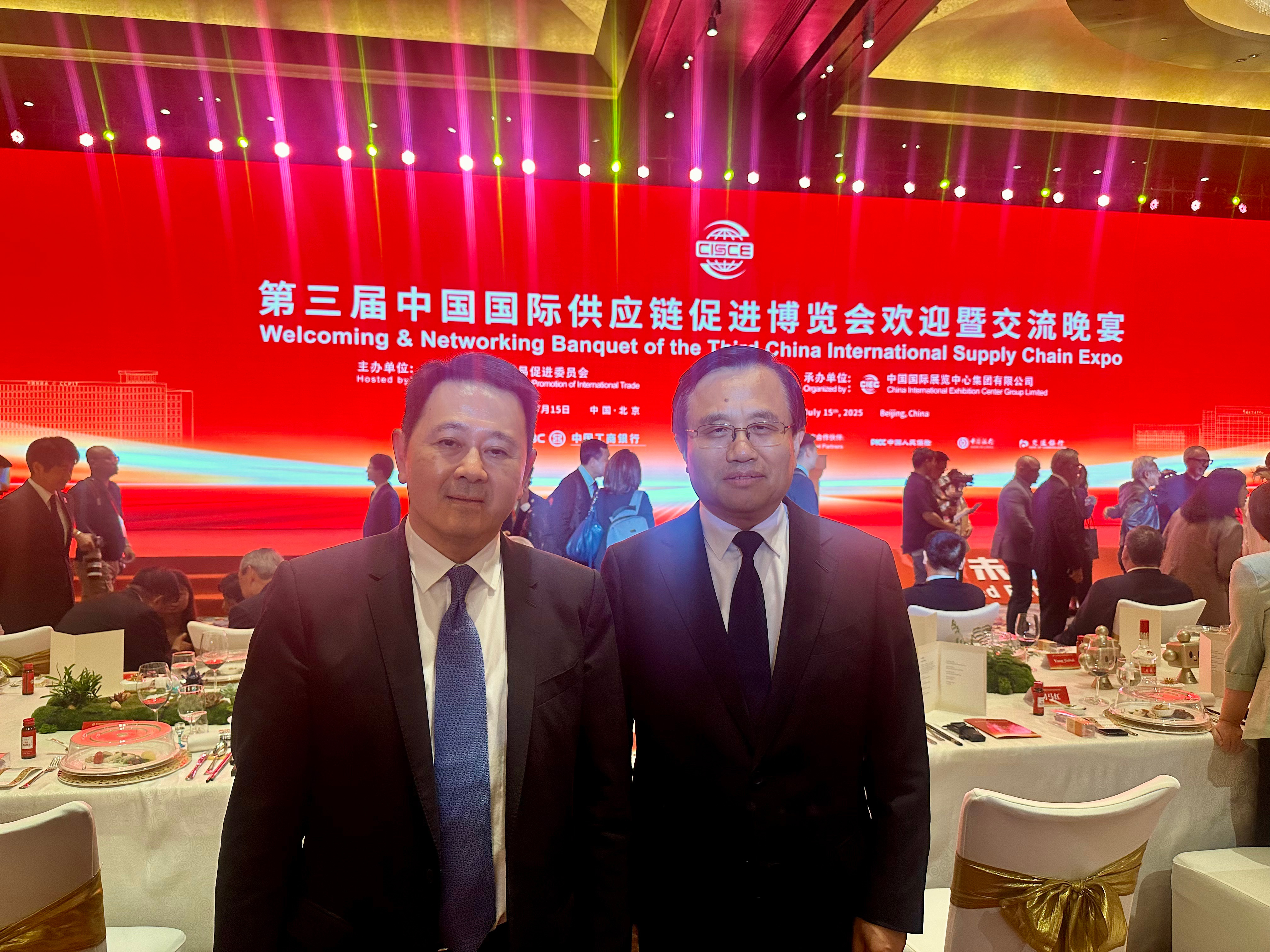 晚宴結(jié)束后,中國(guó)貿(mào)促會(huì)會(huì)長(zhǎng)任鴻斌親切會(huì)見(jiàn)了本屆鏈博會(huì)主賓國(guó)——泰國(guó)代表團(tuán),正大集團(tuán)資深副董事長(zhǎng)謝明欣參加了此次會(huì)見(jiàn)。