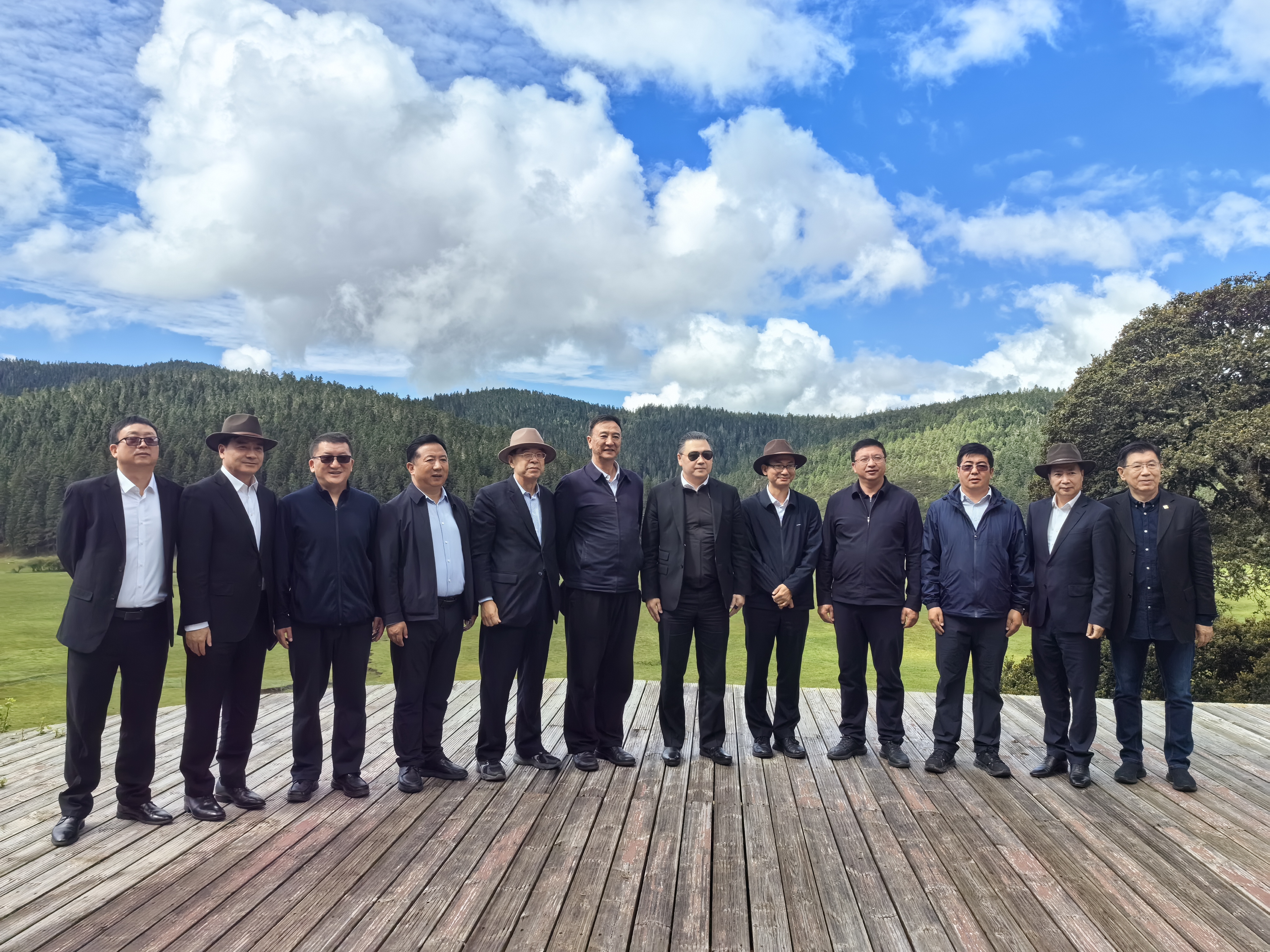 ▲謝吉人集團董事長(右六)、謝毅集團資深副董事長(左五)同云南省僑聯主席何長松(右五),迪慶州委副書記、州長張衛東(左六),香格里拉市委書記黃龍新(右四),迪慶州副州長徐光德(左四),迪慶州政府秘書長莊小平(左三),香格里拉市委副書記、市長巨燕冬(右三)等合影留念。