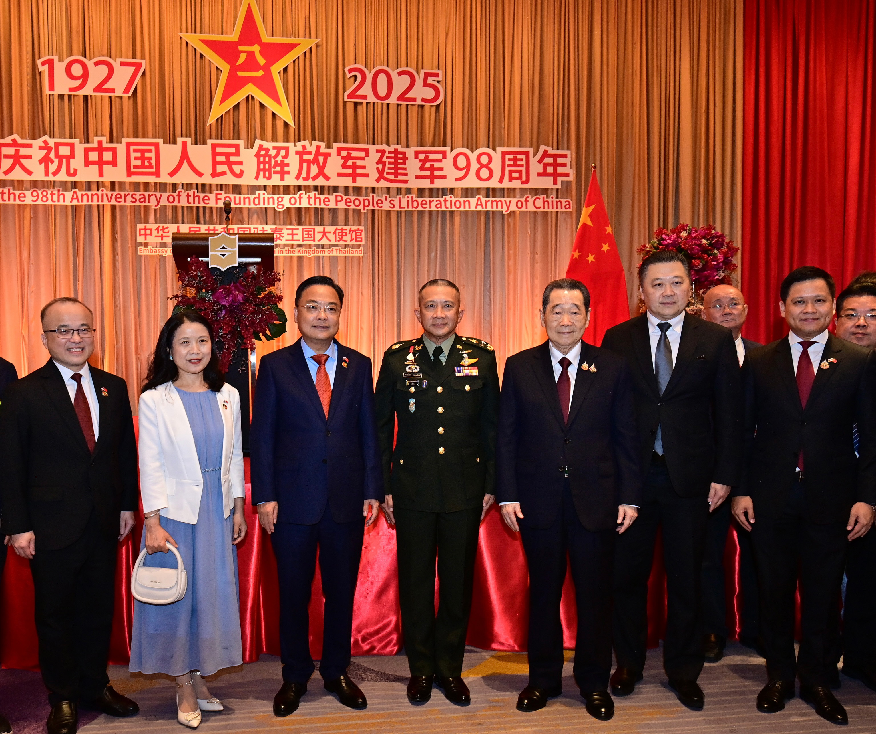 7月31日,中國駐泰國大使館隆重舉行慶祝中國人民解放軍建軍98周年招待會。中國駐泰國大使張建衛(wèi)參加招待會。泰國防部副次長塔拉蓬上將、泰軍最高司令頌威上將、泰陸軍副司令納塔烏上將、泰海軍高級顧問普沖海軍上將、泰空軍司令潘帕迪空軍上將等軍政要員、各國使節(jié)、華人華僑代表1200余人出席招待會。中國駐泰國大使館國防武官張林宏少將在招待會上致辭。
