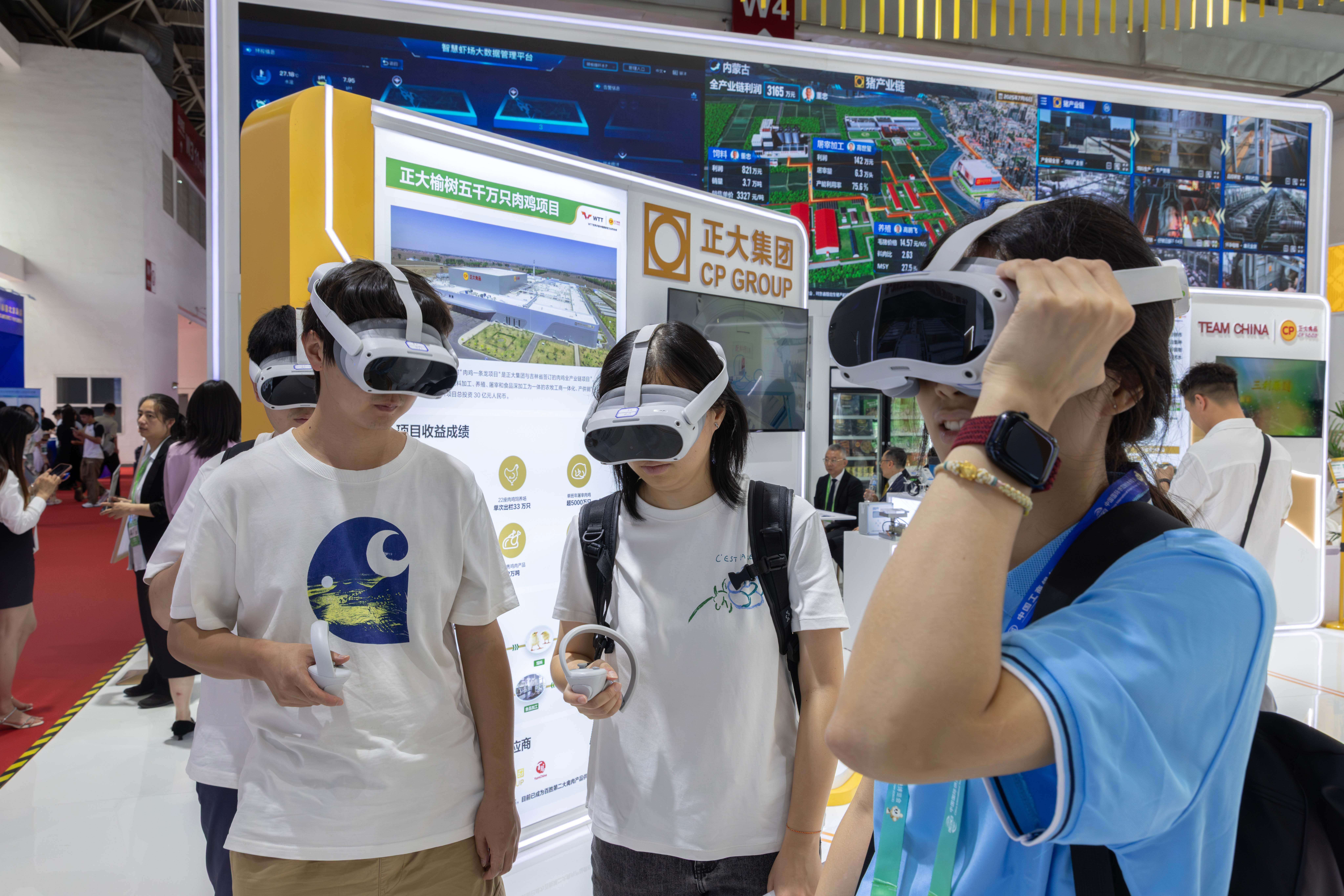 ▲觀眾在正大展館進(jìn)行VR互動(dòng)體驗(yàn)。