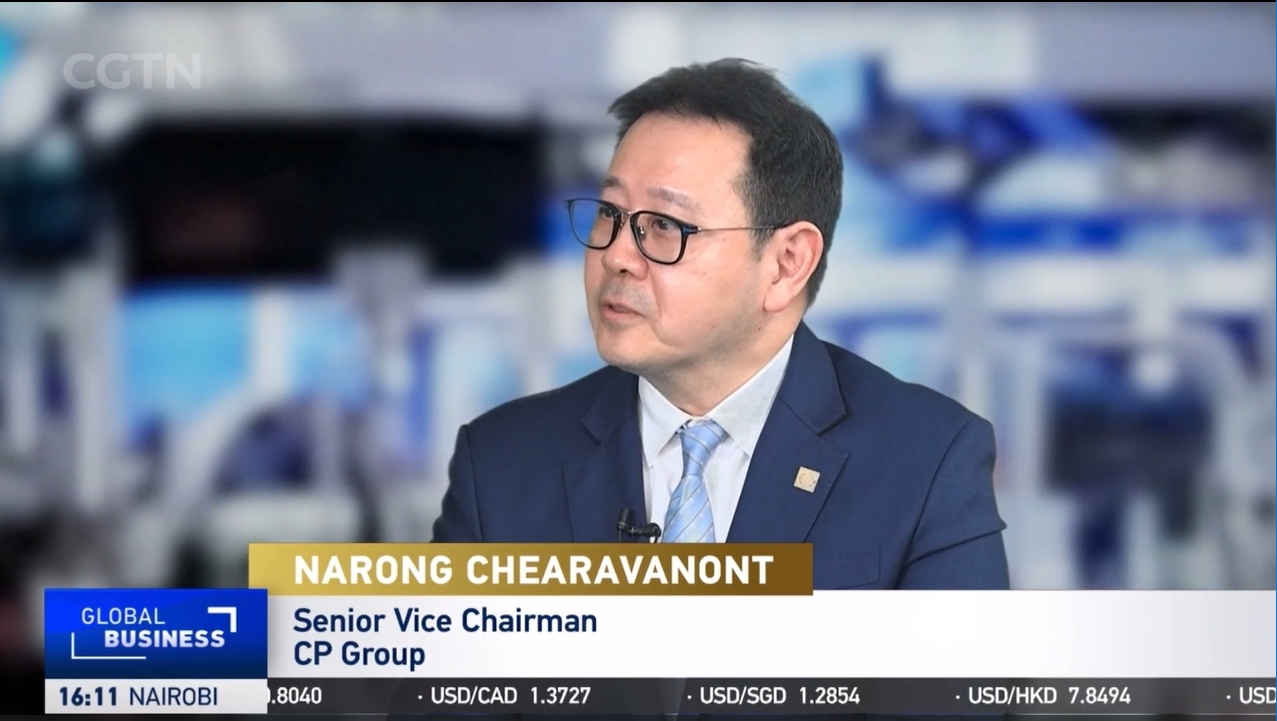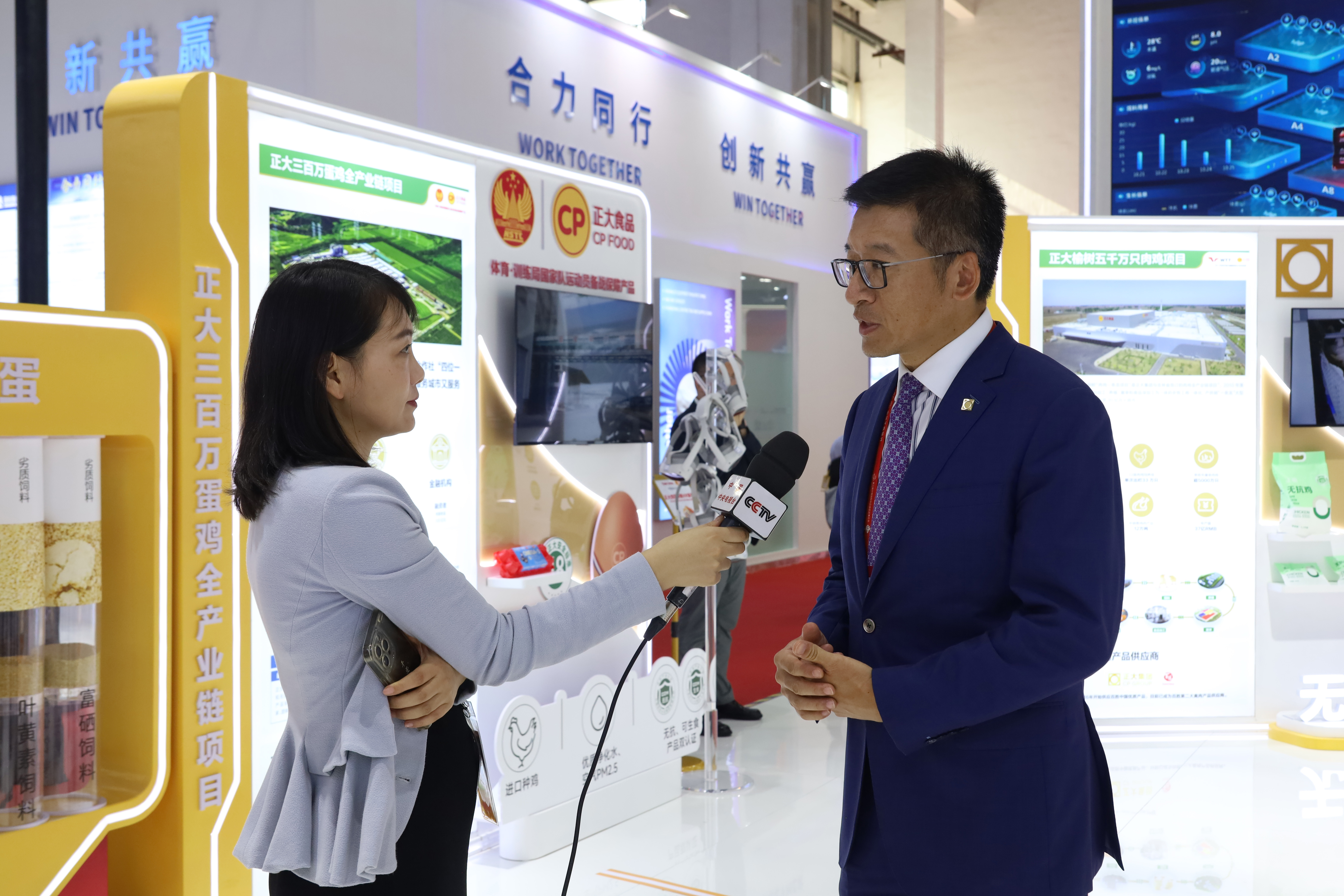 正大集團(tuán)謝明欣資深副董事長(zhǎng)接受中國(guó)國(guó)際電視臺(tái)CGTN記者采訪。