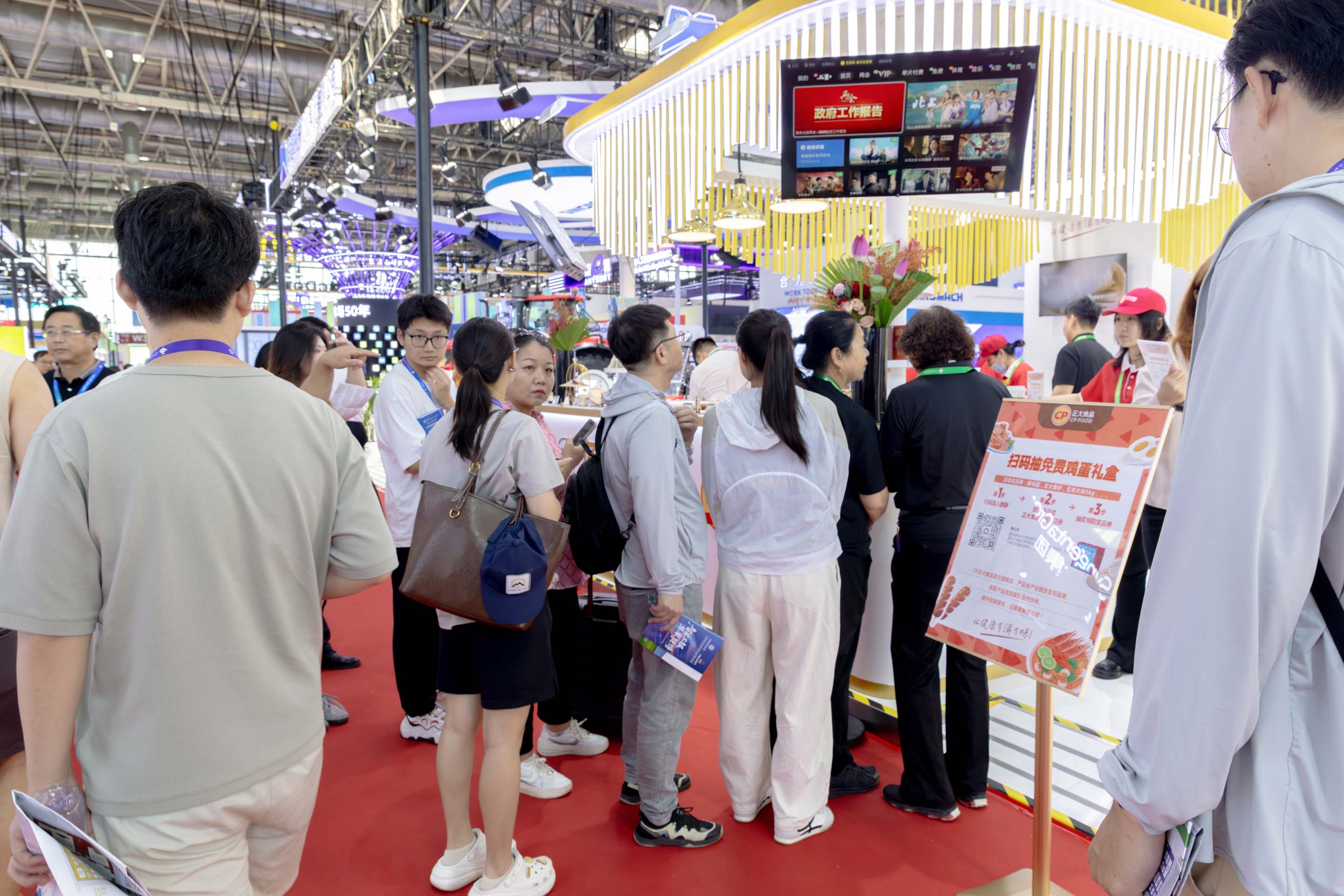 ▲觀眾在正大展館排隊(duì)參與活動(dòng)。