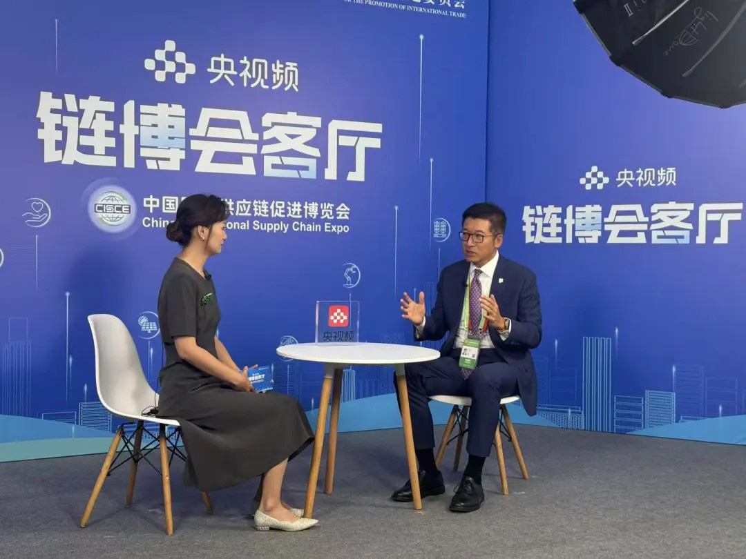 揚(yáng)綱副董事長(zhǎng)接受央視新聞、央視頻“鏈博會(huì)客廳”頻道、新華網(wǎng)記者采訪。